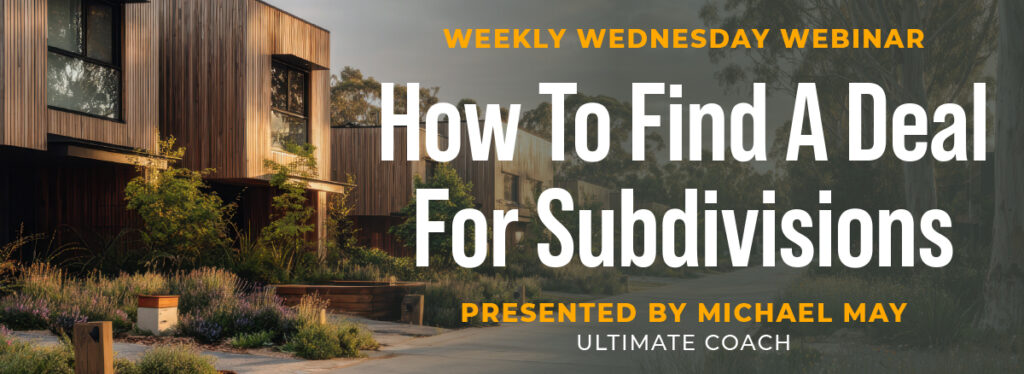 Finding Subdivision Deals: A Practical System That Actually Works This Weekly Wednesday Webinar with Ultimate Coach Michael May breaks down one of the most valuable…